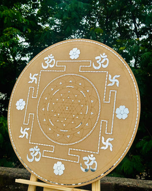 Enhance your artwork with this Premarked Shree Yantra Cutout, featuring elegant mirror detailing. Perfect for traditional decor, Lippan art, and spiritual craft projects.