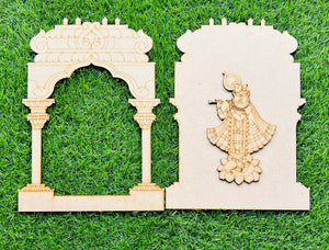 - Decorative Dual-Layer Setup: Fancy cutout mounted over a traditional jharokha-shaped MDF base for elevated design